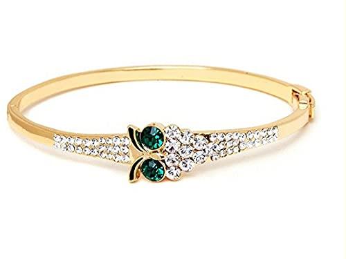 フクロウ バングル ブレスレット 18金 ゴールド エメラルド グリーン スワロフスキー 18KGP ハリウッド セレブ ジュエリー