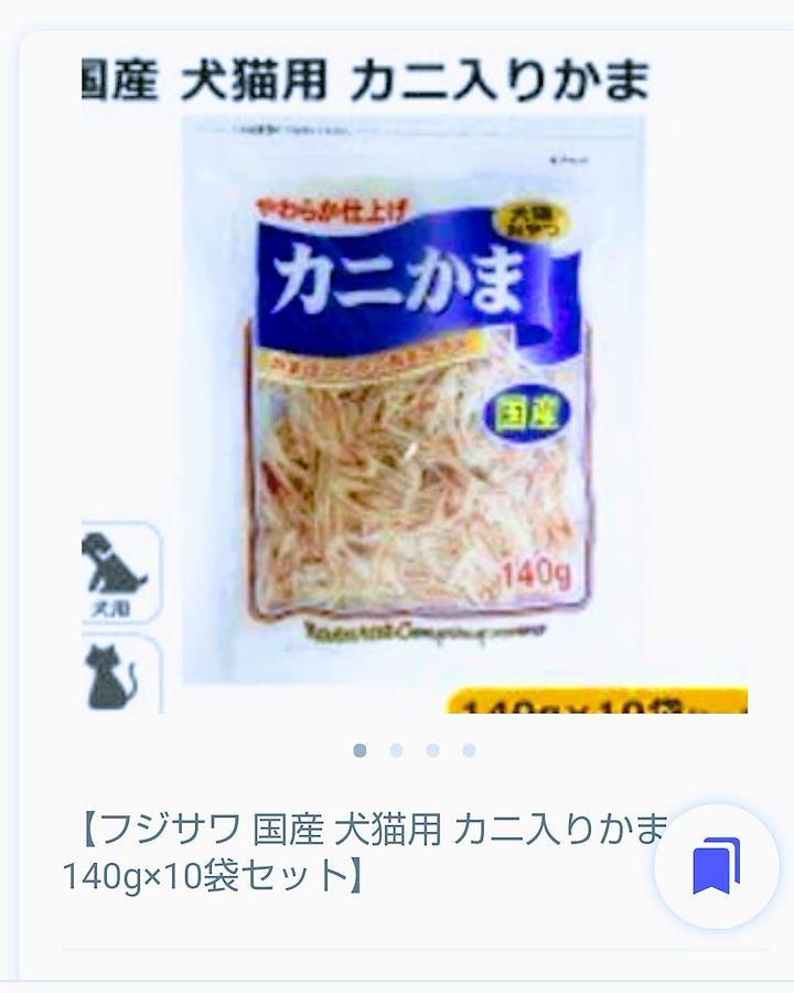 かまぼこにカニ肉をプラスしたおやつ。食べやすいようにスライスしました。