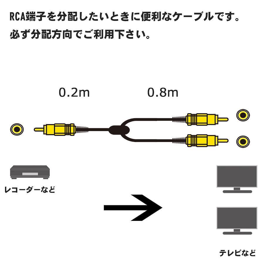 片側:RCAプラグ(オス)×1、片側:RCAプラグ(オス)×2 、金メッキプラグ 、ケーブル長:1m (分岐点まで20cm・分岐後それぞれ80cm)