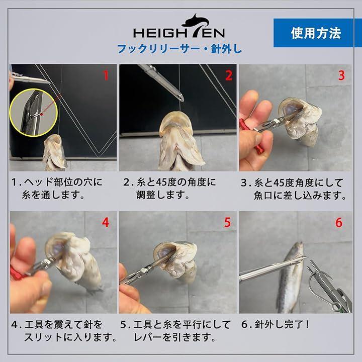 「特徴1」飲まれた針も外せる、魚体に触れず針外しできる、片手で簡単に魚の口から針を外すことができる、魚のトゲや針が手に刺さらず安全。