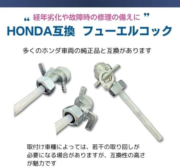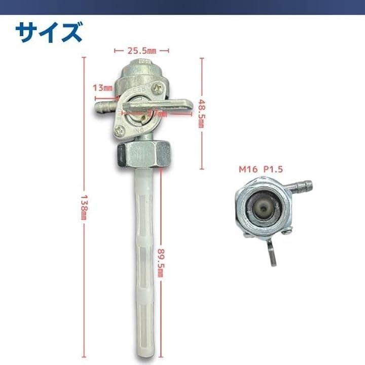 「幅広い対応車種」このフューエルコックは、モンキー、ゴリラ、CB400T、エイプなど多くの車種に適合する汎用品です 特にM16 P1.5サイズの燃料ホースを使用する車両に対応し、ホンダ車両をはじめ、幅広いモデルに簡単に取り付け可能です また、サイズが合えば他の車両でも使用できるため、カスタムパーツとしても最適です