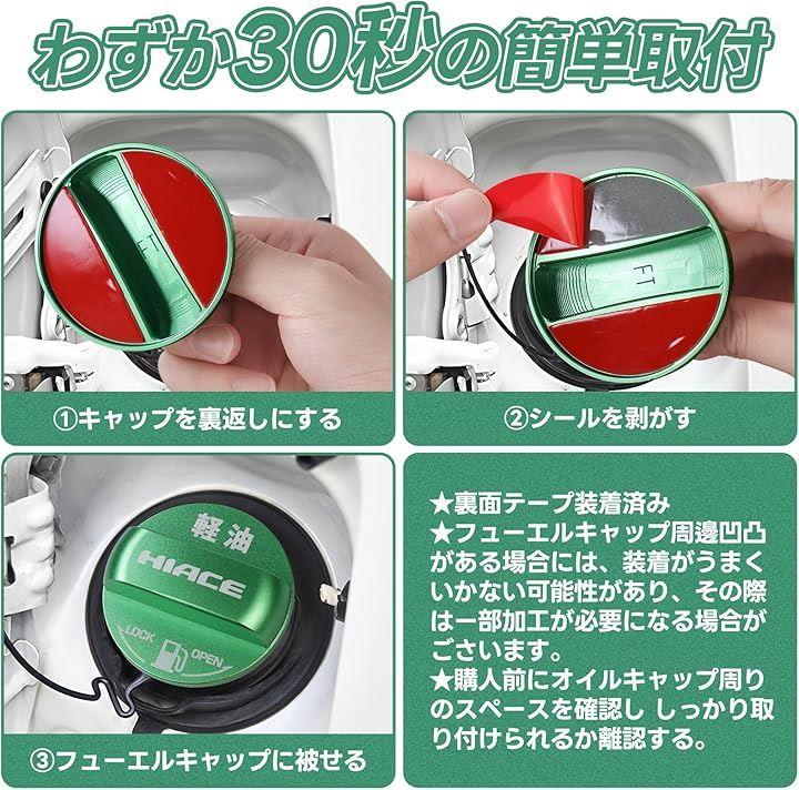「簡単取り付け」トヨタ ハイエース 200系 フューエルキャップカバーは強力な3M両面テープ付属で、剥き出しのフューエルキャップに被せるだけ。