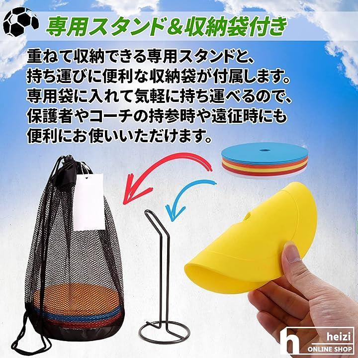 従来のコーンは立体なのに比べ、フラットコーンは平面なので風が強い日も飛びにくく、踏みつけたり当たったりしてもズレにくいので、マーカーの位置を直す手間を省け、中断することなくトレーニングに集中できます。