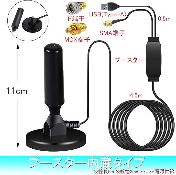 ご好評頂いております、ワンセグ・フルセグ対応の無指向性(電波塔にアンテナを向ける必要が無い)のショートアンテナにブースター搭載。