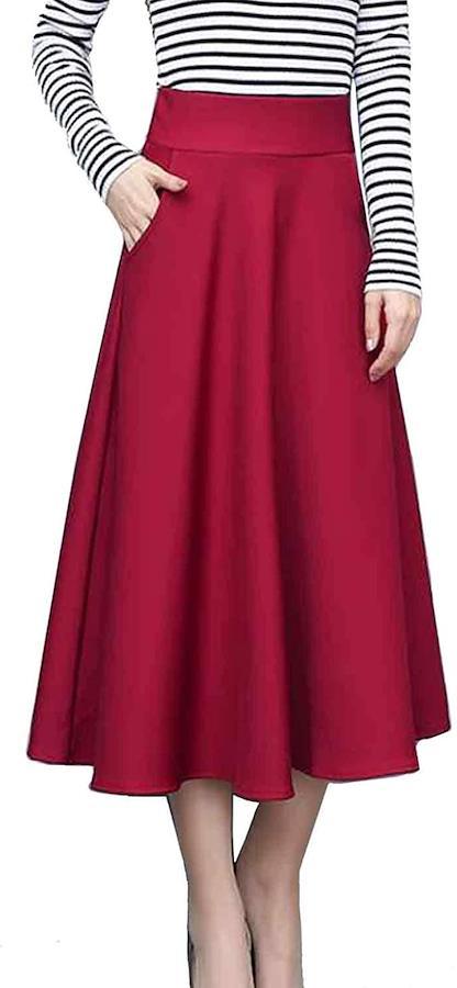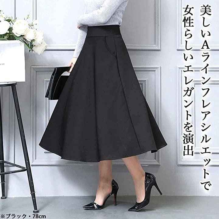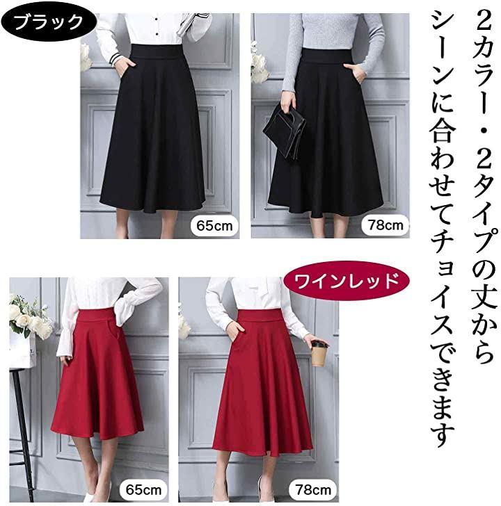 ・うれしいポケット付 シンプル Aライン フレア スカート です*スカートの長さは65cm、78cmから選るので、長身の方でも短すぎることなく着用することができます。