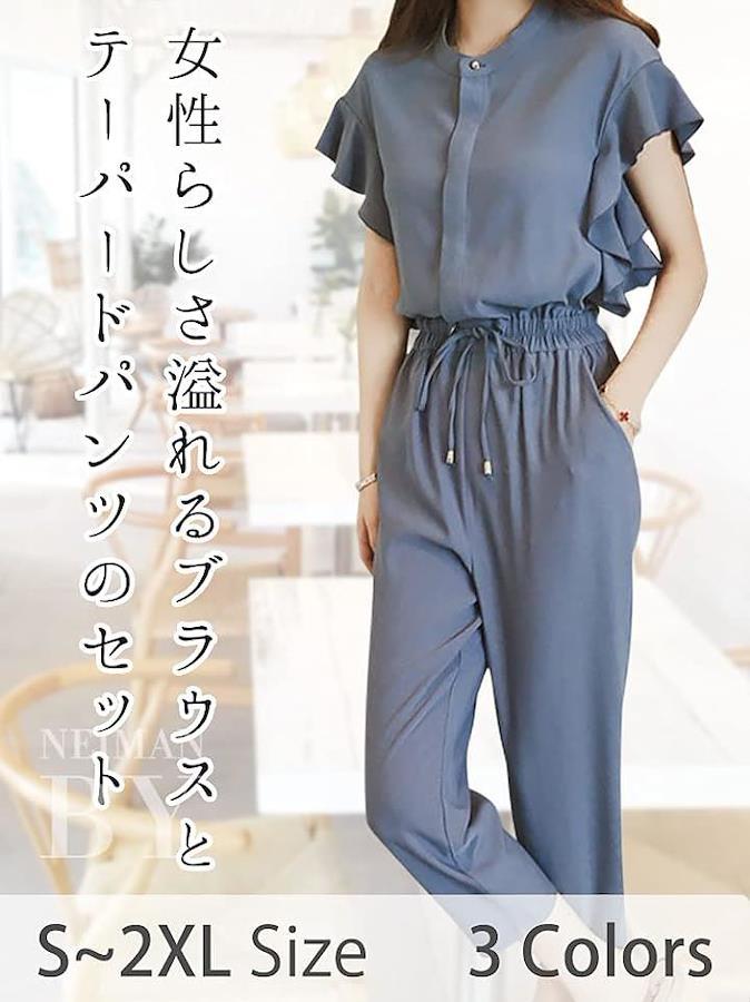 女性らしさ溢れるブラウスとテーパードパンツのセットアップが登場しました。