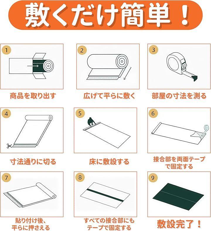 「敷くだけで手軽に設置できる」畳やフローリングの上にそのまま敷くだけで、地面を傷や汚れから守りながら、部屋をより美しくします。