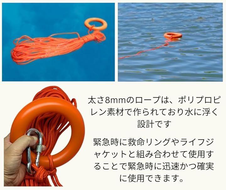 太さ8mmのロープは、救命リングやライフジャケットと組み合わせて使用することで、溺れた人を安全に引きよせることが可能です