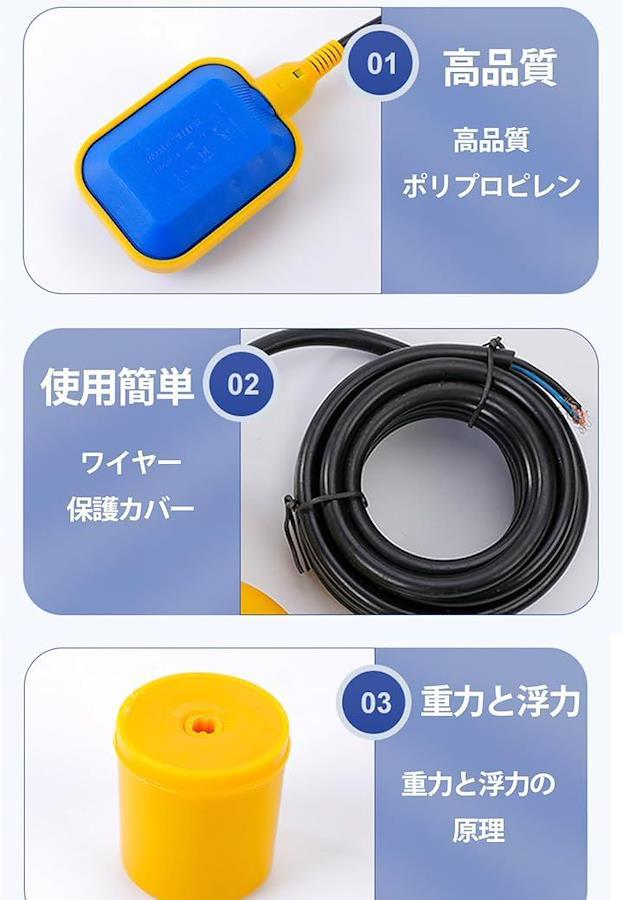 液体水位を自動で検知し、ウォーターポンプや水中ポンプを効率的に制御。節水節電にとっても役立つ。機械の焼き付きも防止するフロートスイッチです。