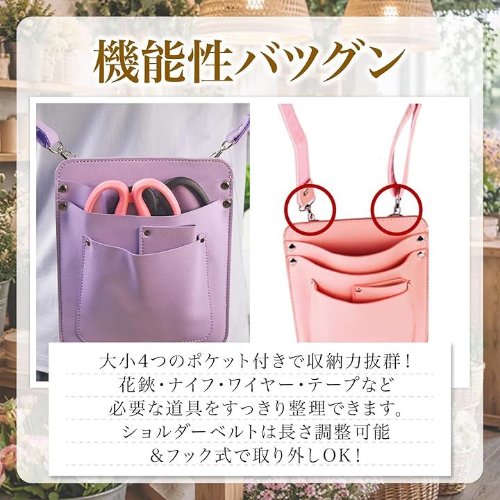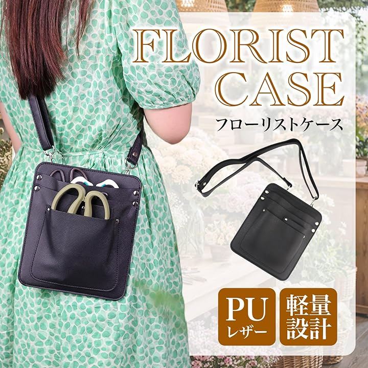 ハサミや道具をすっきり収納。PUレザー製のフローリストケースです。