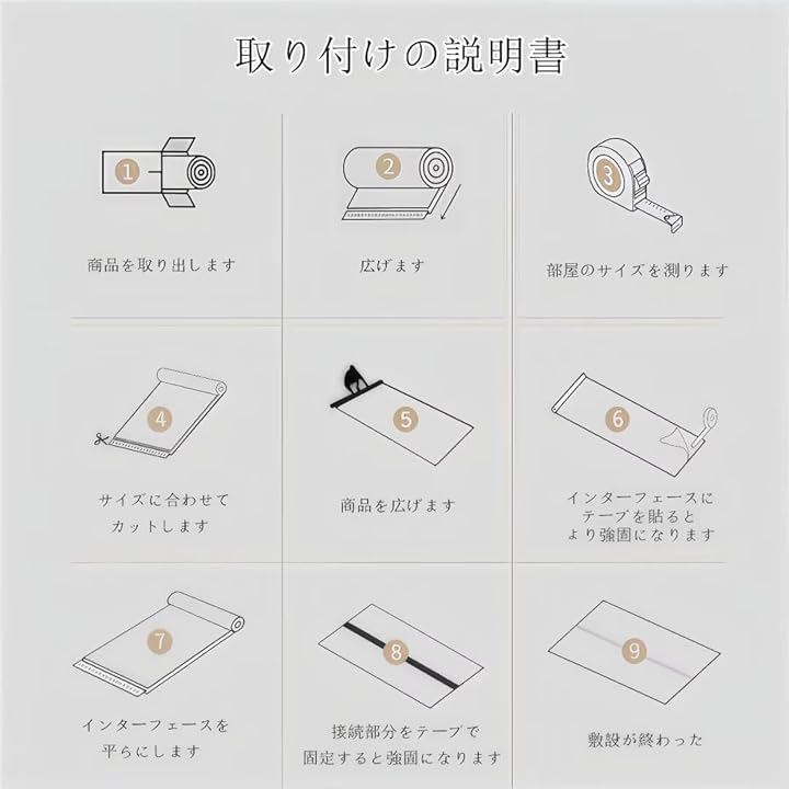 「設置簡単」マット本体は接着剤も工具も使わなくて敷くだけの簡単施工で、接続部のみがテープで貼り合っておくとOKです。