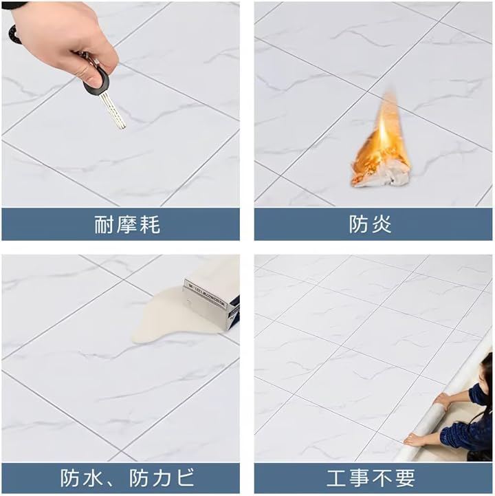 「掃除簡単&耐磨性抜群」フローリングカーペットはホルムアルデヒド放出数が少ないPVC材料で作られて、優れた強度と耐摩耗性を持っています。