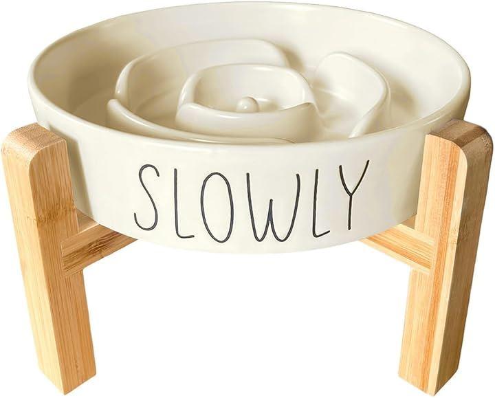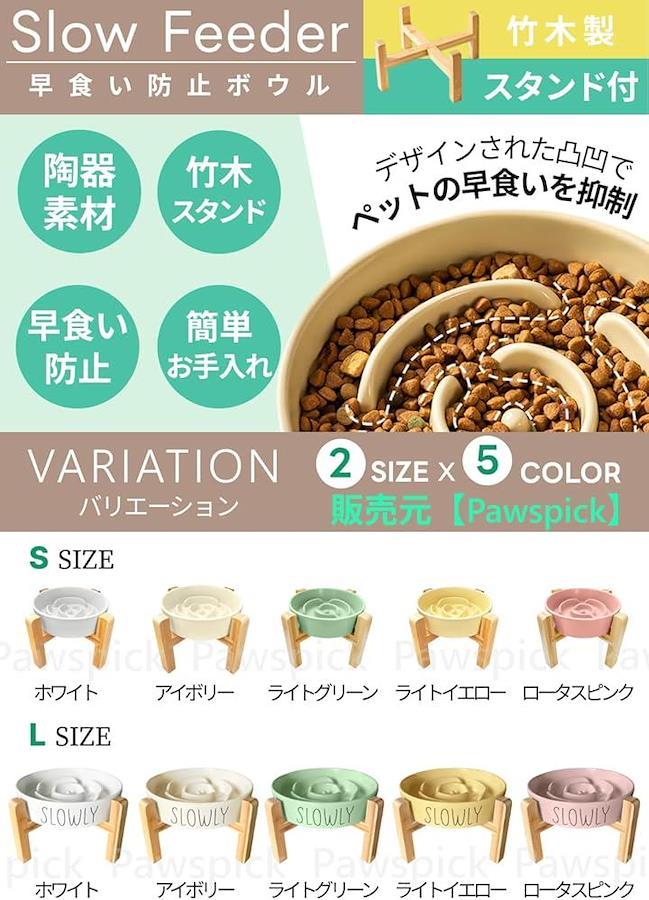「こんなお悩み、ありませんか?」 ・ペットが食事をすぐに食べ終えてしまう ・早食いが原因で吐いてしまう・消化不良を起こす ・食事のペースが早く、肥満が気になる ・水やフードがこぼれやすい 「3つのポイントで、ペットの健康をサポート」 (1) ゆっくり食べることで、消化を促す(2) 高品質な陶器製で、清潔で手入れ簡単 (3) 竹木スタンド付き&滑り止めで安定感抜群 「スタンド向き変えると高さ調整可能」 ・スタンドの丸い角が上の場合:高さ 約12cm ・スタンドを逆にして平らな面が上の場合:高さ 約10.5cm