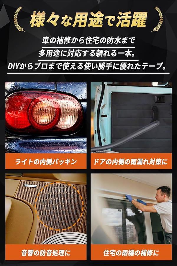 ブチルテープ 自動車整備士監修 高密着 防水 シーラント バイク ヘッドライト テールランプ ドア 水漏れ 補修 防音 防塵 防滴 DIY