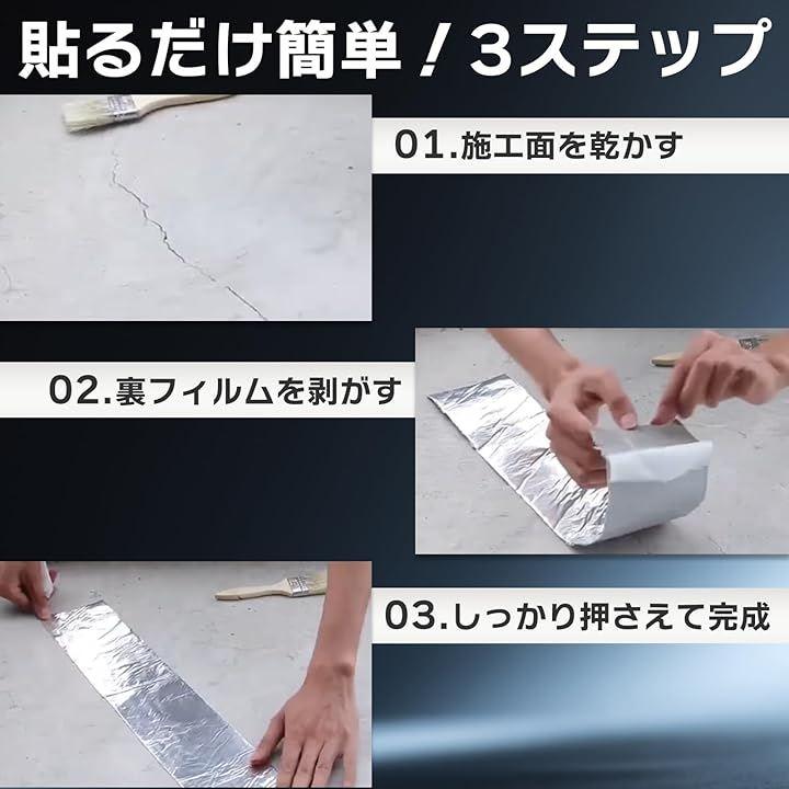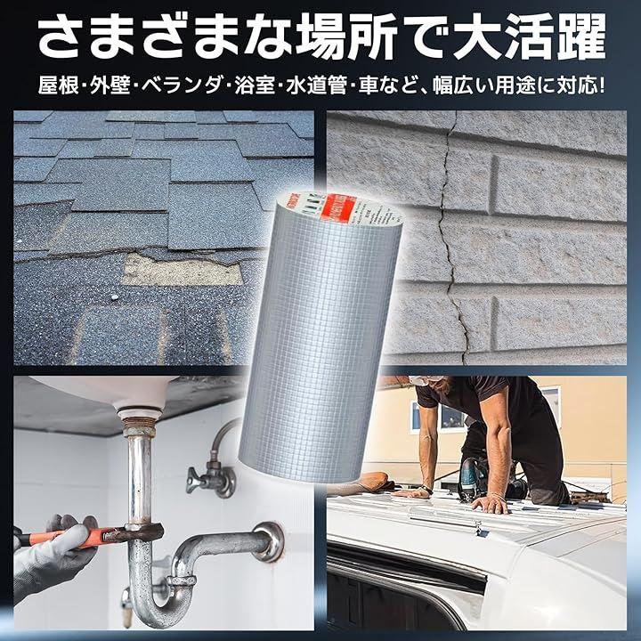 厚さ1mmの使いやすいサイズで、住宅や建築の補修から自動車やキャンピングカーのメンテナンスまで幅広く活躍します柔軟性のあるブチルゴム素材が凹凸面や曲面にも密着し、隙間やひび割れをしっかり塞いで長期的に防水効果を発揮します。