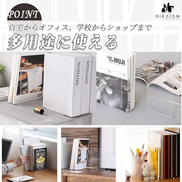 「本棚を美しく整理」どんなインテリアにもマッチする透明アクリルブックエンドです。