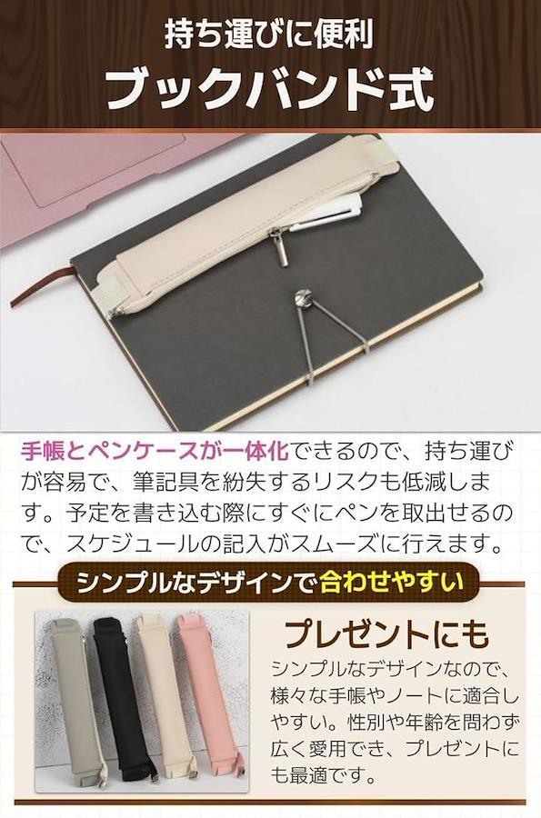 「ブックバンド式」手帳とペンケースが一体化できるので、持ち運びが容易で、筆記具を紛失するリスクも低減します。