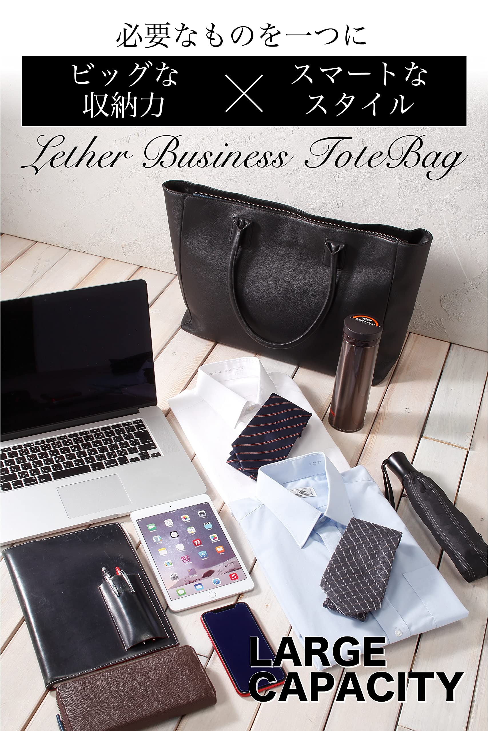 ? 2022年12月20日 持ち手がほつれない仕様に変更しました。 .? 【 収納力抜群の 大容量 設計 】 16インチPC、B4サイズが収納可能な大容量設計の本革ビジネストートバッグ。出張、旅行、通勤などさまざまなシーンで活躍します。? 【 耐久性の高い 天然皮革 】 ハンドル部分も含め、外観の素材には贅沢に全て本革を使用しています。長く使い続けられるように厳選した牛革で丁寧に仕上げております。? 【 バランスの取れた 王道デザイン 】 大容量な収納力を兼ねながらもデザインとして美しく見えるように設計。ビジネスにもカジュアルにもスッと溶け込む扱いやすいバッグが完成しました。? 【 大容量ながらも機能的 】 ただ単にたくさん収納できるだけでなく、整理して綺麗に収められるよう内部を設計しました。PCはクッション付きの専用ポケット、傘や水筒などの縦長のものを収納できるポケットが配置されています。? 【 細部にも こだわりを 】 ストレスなく長くお使いいただけるよう、使用頻度の高いファスナーは耐久性の高いYKKファスナーを使用。いつでも床に置けるように汚れ防止の底鋲を配置。自立するように丈夫な芯材を入れるなど細部にもこだわり丁寧に作りあげています。