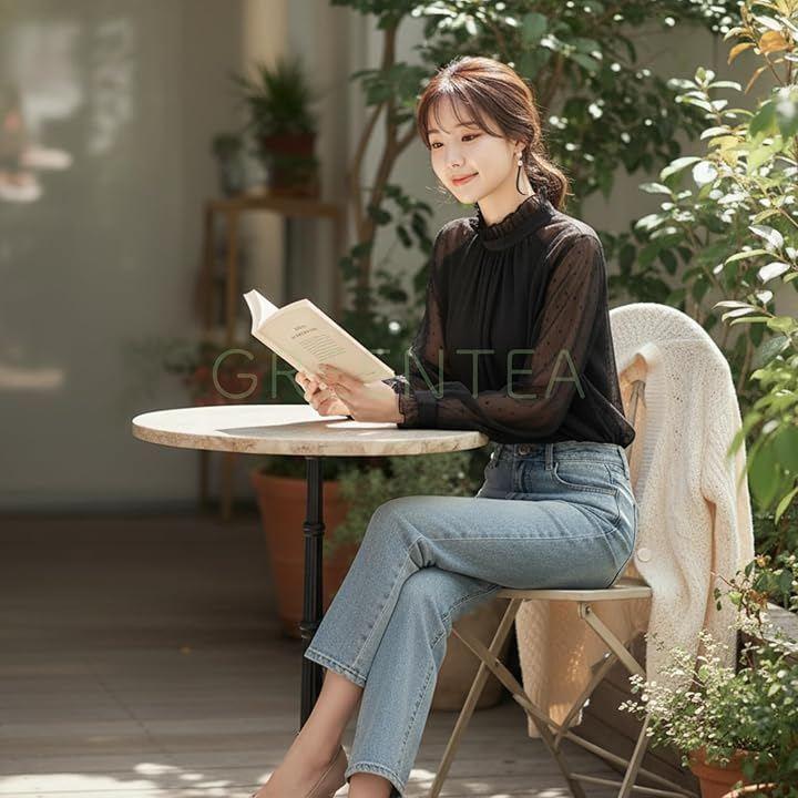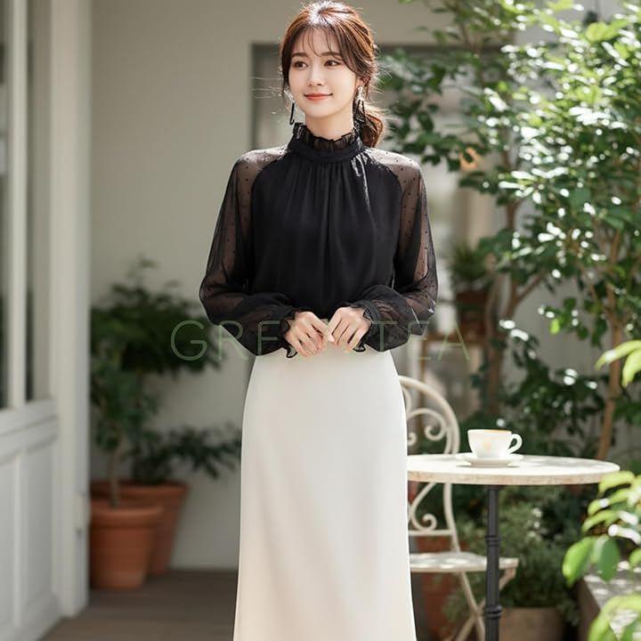 ふわっと柔らかいレース地で、見栄えが良い上に着心地良好な長袖ブラウスです。