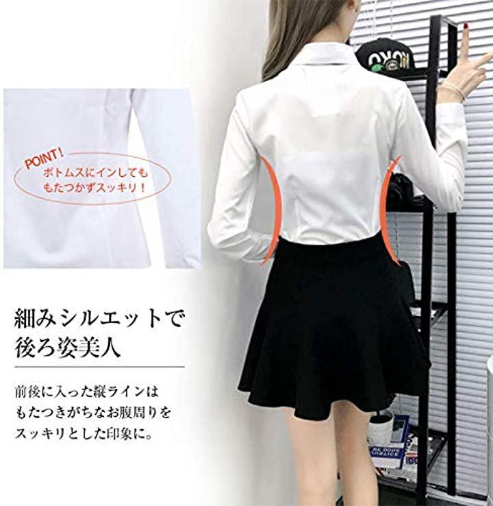 スカートにもパンツにも似合う 白 の ブラウス で、シャツ 1枚だけでも、カーディガンやジャケットのインとしても最適です。