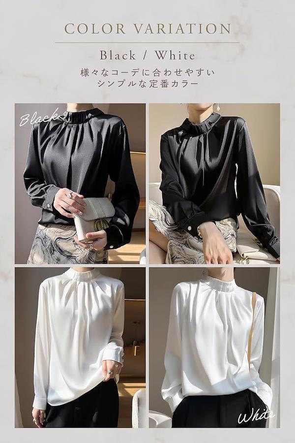 ポイント(2):シルクタッチの光沢とスベスベした肌触りのアセテート生地は毎日着たくなるブラウスです。