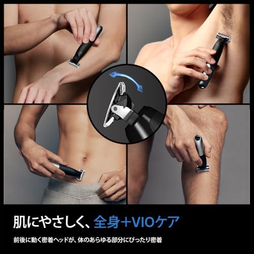 顔、わき毛、胸毛、すね毛、腕毛、腹毛、ふとももの毛からデリケートゾーンまで、全身のムダ毛処理に。肌へのダメージを最小限に抑える 肌に優しい設計。肌の安全と快適さを追求した設計。肌の切れや傷を最小限に抑える。全身のムダ毛ケアを一台で。顔からつま先まで。