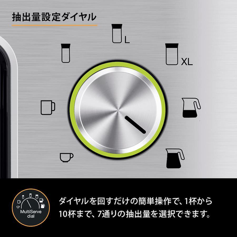 3営業日以内に発送≪新品未開封品≫:プロが認めた*味わいを、飲みたいときに飲みたいだけ。ポンプとフローメーターの技術を採用したExactBrewTechnology(イグザグトブリューテクノロジー)によって水の計量の手間を省き正確な分量で飲みたいときに、飲みたい分だけを抽出。ダイヤルを回すだけで、1杯から10杯(1250mL)まで7種類の抽出量から選ぶことができます。高さ14㎝までのカップ1杯分を抽出するのに便利なワンカップホルダー付き。