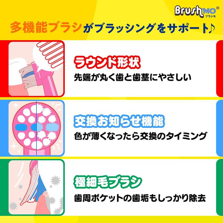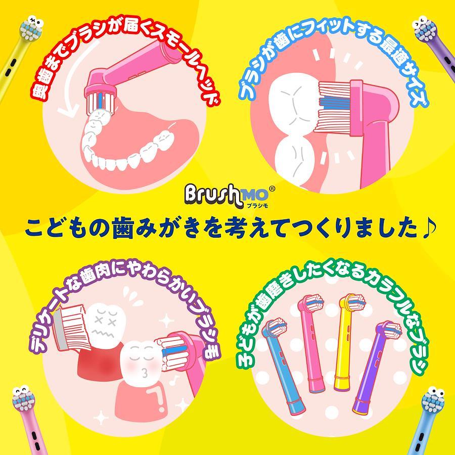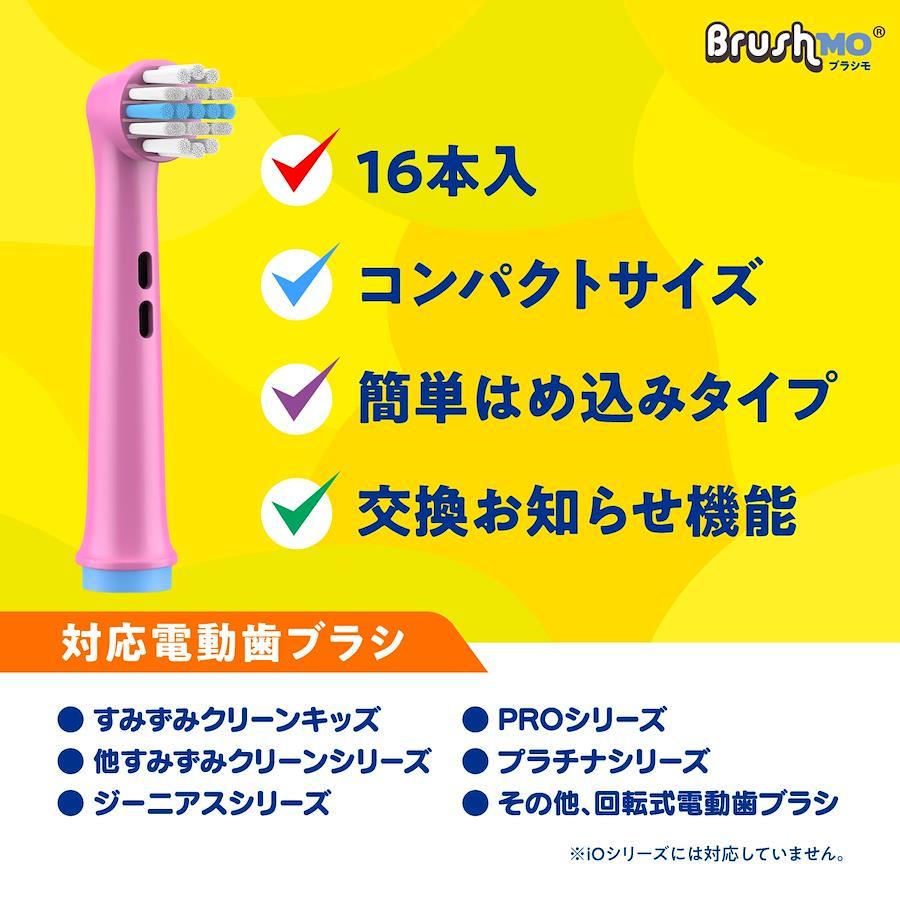 本製品は、互換替えブラシです。 キッズデザイン:子供の口の大きさに合わせたサイズで、歯や歯ぐきを傷つけないよう、やわらかな極細毛を使用しています。※お口の小さな方も使用可能です。 対応機種:すみずみクリーンキッズ、すみずみクリーンEX、すみずみクリーンEX&ホワイト、すみずみクリーンEX&フロス 、すみずみクリーン、すみずみクリーン&つるつるホワイト、すみずみクリーンプラス、ジーニアス9000、ジーニアス8000 プラチナ・ブラック/ホワイト7000、 PRO4000、PRO3000、PRO2000、PRO500、PRO450、イージートライ3000、デンタプライド4000 等 ※iOシリーズには対応していません 交換お知らせ機能付き:青い毛先が白くなって変更タイミングをお知らせします。お子様の歯磨きには約1ヶ月ごとの交換を推奨していますが、使用頻度や使用方法、保存環境等の条件によって異なります。 対象年齢:3才以上