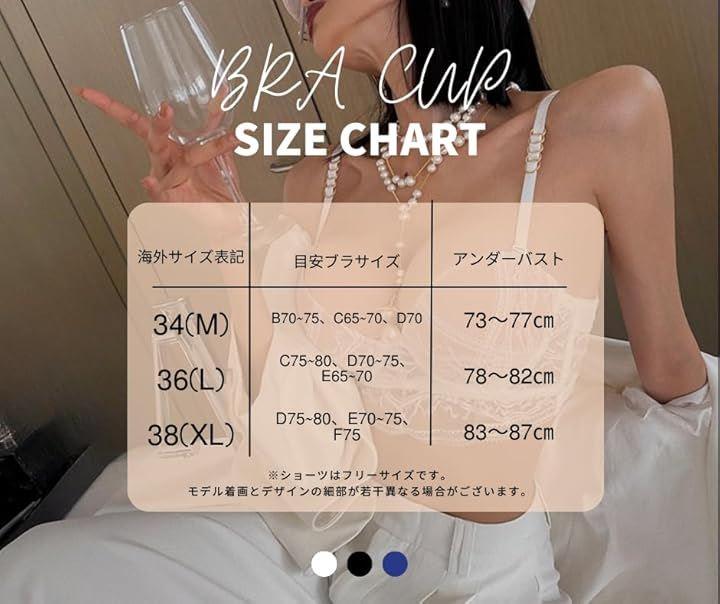 ・34(M)サイズ B70~75、C65~70、D65~70 ・36(L)サイズ C75~80、D70~75、E65~70 ・38(XL)サイズ D75~80、E70~75、F75~80