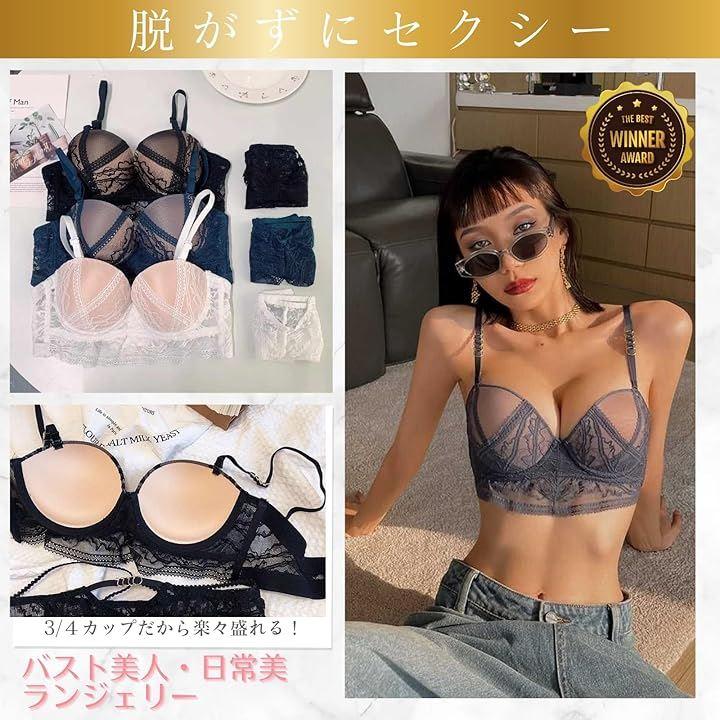 「美胸メイク x 快適フィット」 高品質な盛れるブラジャー&セクシー総レースショーツセット 理想のバストラインを叶える盛れるブラジャーと、エレガントな総レースショーツのセット。