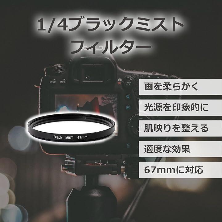 「製品仕様」「効果」ブラックミストソフトフィルター 1/4 「対応ネジ径」67mm 「素材」アルミニウム+ガラス