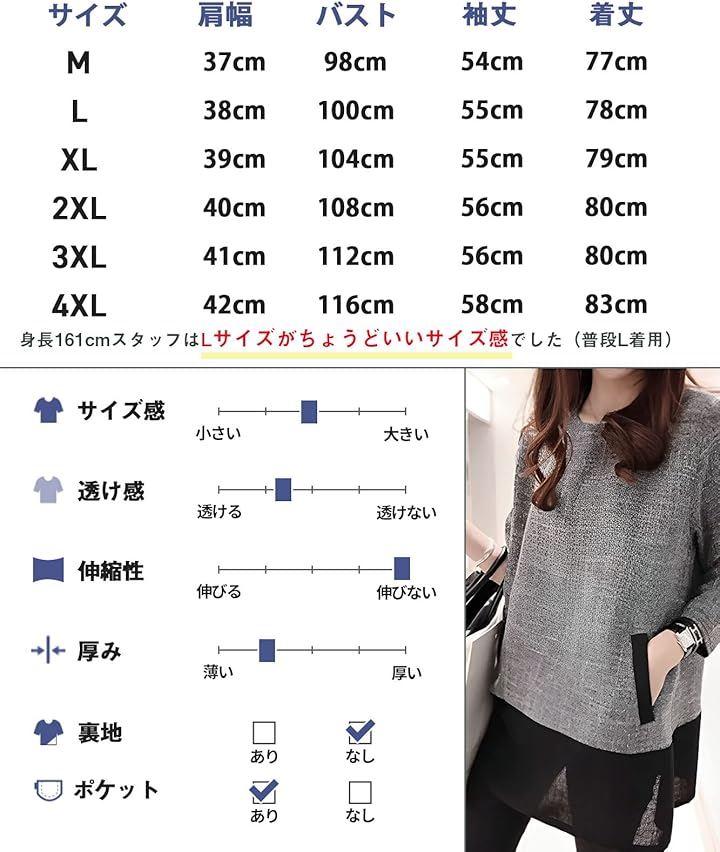 サイズ:肩幅/バスト/袖丈/着丈(cm) (M) 37/98/54/77 (L) 38/100/55/78 (XL) 39/104/55/79 (2XL) 40/108/56/80 (3XL) 41/112/56/80 (4XL) 42/116/58/83 *寸法は平置きにて計測し、若干の誤差がある場合がございます。