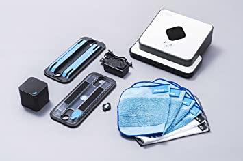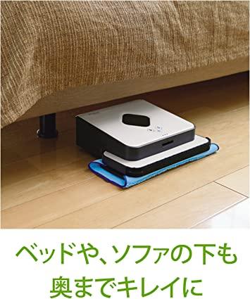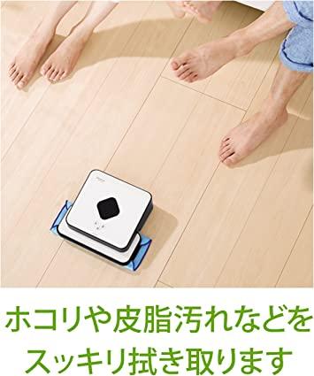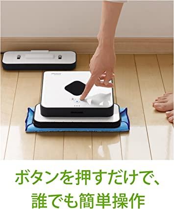 通常1-5営業日で発送:【静音性】静音中にほとんど音が気になりません。在宅中でも気軽に拭き掃除・水拭きが出来ます。/【安全設計】センサーにより床の段差を確認しながら清掃するので落下の心配がありません。また、センサーによりカーペットやラグなどに乗り上げることも回避します。/【清掃モード】毎日のホコリや皮脂汚れには水拭きの「ウェットモード」。ホコリ、髪の毛などには、から拭きの「ドライモード」。/【花粉対策】外から持ち込まれた花粉をスッキリ拭き取り、気持ちよく過ごすことができます。/【ウェットモード】同じ場所を3回丁寧に拭き、広い部屋(最大20畳)でも一度に水拭きします。多彩なセンサーで、フロア全体をナビゲーション。ルンバ自身の位置を把握し、家中のフロアをすみずみまで清掃します。/【ドライモード】最大56畳の部屋を直線的に動いて、から拭きします。/【サイズ】幅24.4cm ×奥行21.6cm× 高さ7.9cm / 重量:1.8kg/【付属品】ブラーバ本体、ACアダプター、NorthStarキューブ、クリーニングパッド(2種)、ウェットクロス×4、ドライクロス×2、交換用導水キャップ
