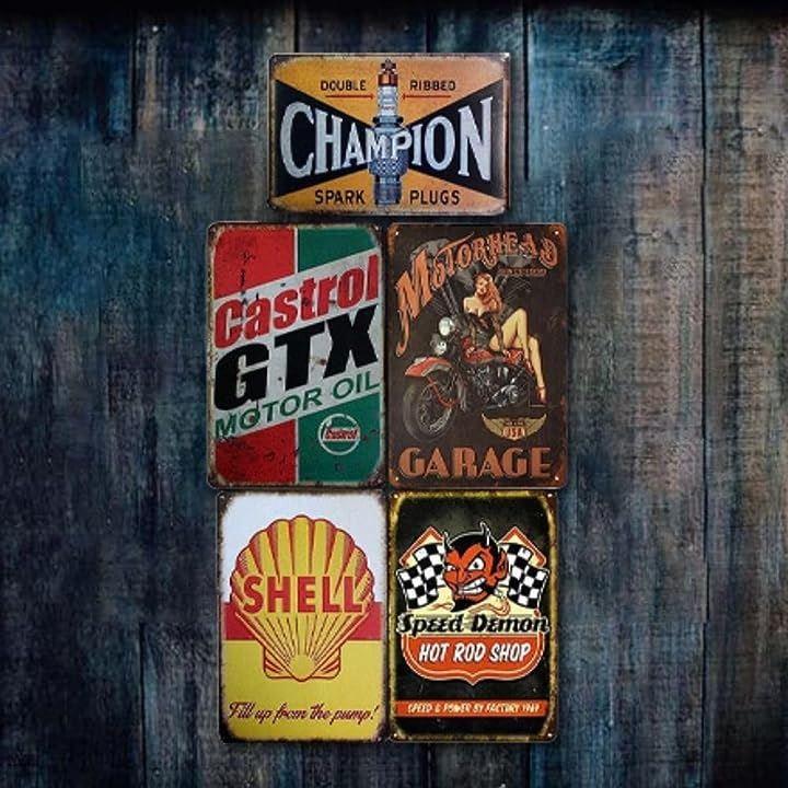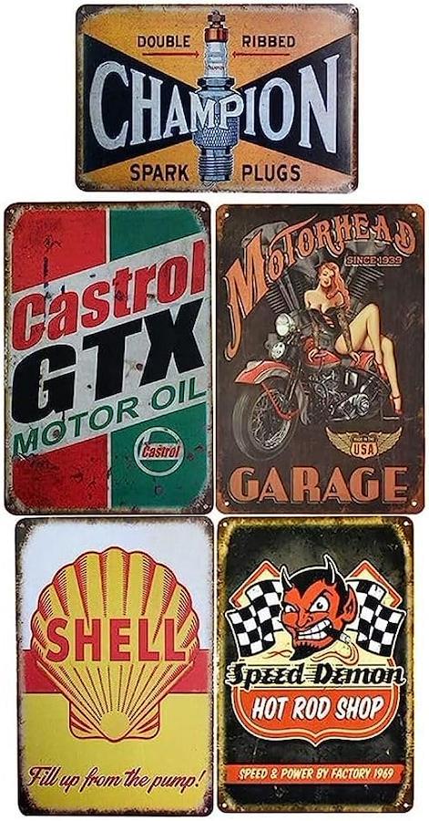 1950年代や1960年代のアメリカンレトロスタイルを再現したデザインが特徴のブリキ看板のセットです。