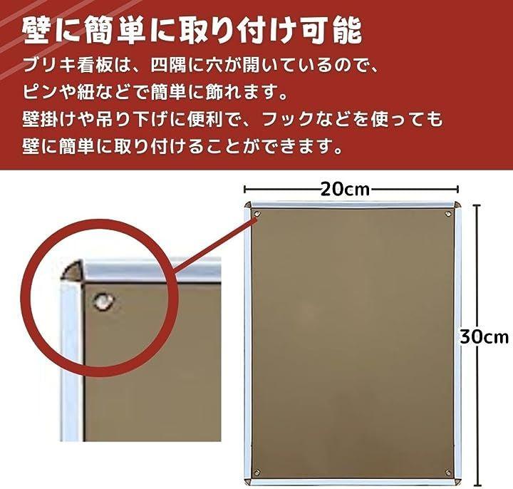ブリキ看板プレートセットは、四隅に穴が開いているので、ピンや紐などで簡単に飾れます。