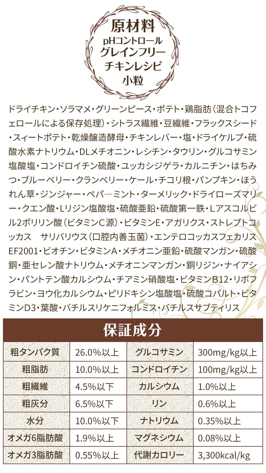 グレインフリー(穀物不使用)のチキンを主原材とした小粒タイプの ドッグフード
