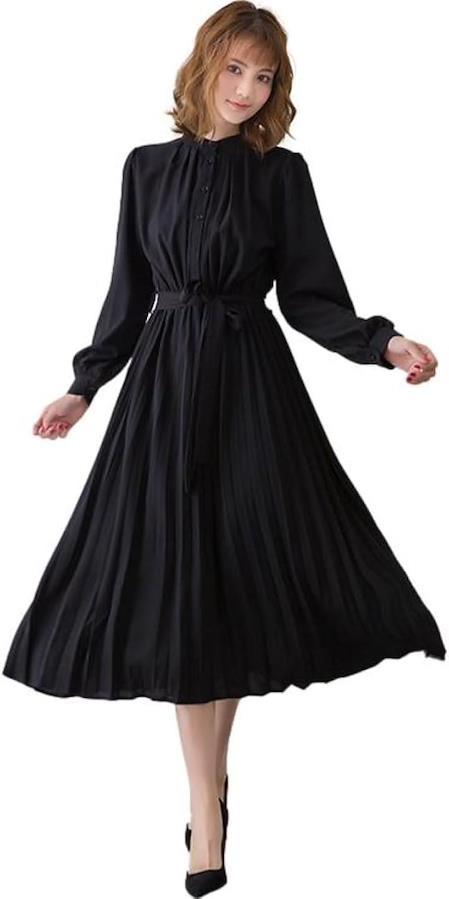 「エレガントな美シルエット」 ウエストから裾に向かって施された細かいプリーツが縦長ラインを強調し、エレガントな美シルエットを描く上品ロングワンピース。