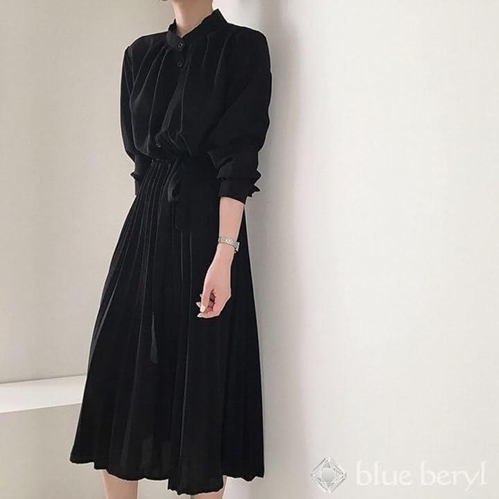「エレガントな美シルエット」 ウエストから裾に向かって施された細かいプリーツが縦長ラインを強調し、エレガントな美シルエットを描く上品ロングワンピース。