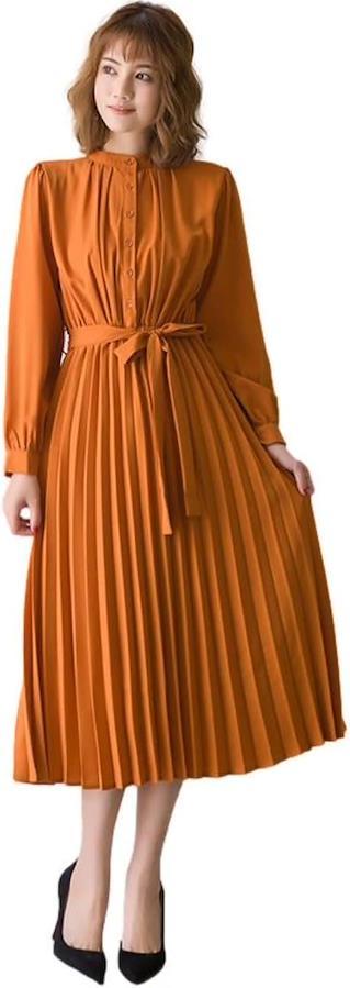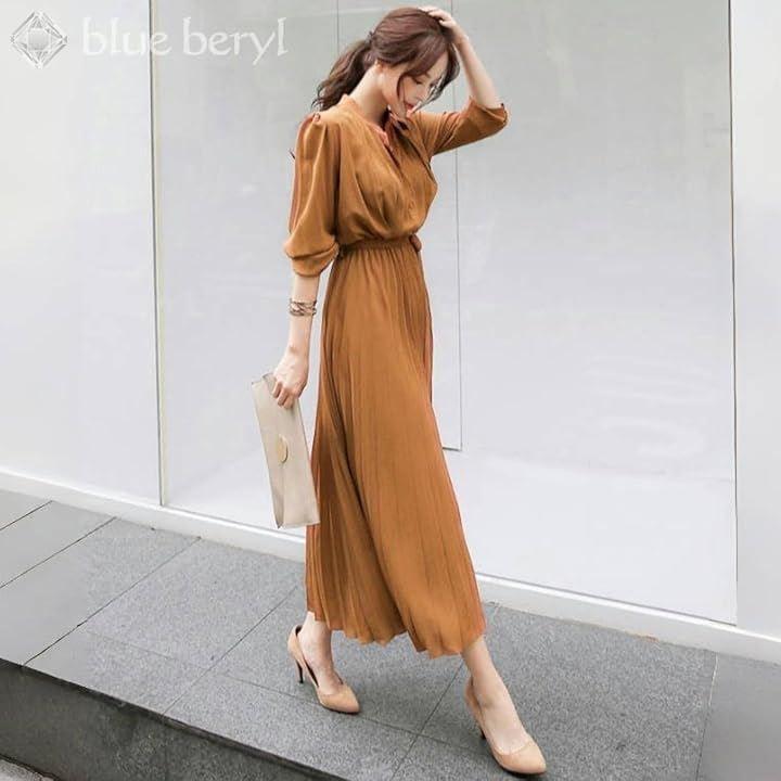 「エレガントな美シルエット」 ウエストから裾に向かって施された細かいプリーツが縦長ラインを強調し、エレガントな美シルエットを描く上品ロングワンピース。
