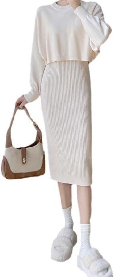 ブルーベリル ワンピース ニット セットアップ レディース 膝下丈 ニットプルオーバー ドルマンスリーブ 丸首 BB021