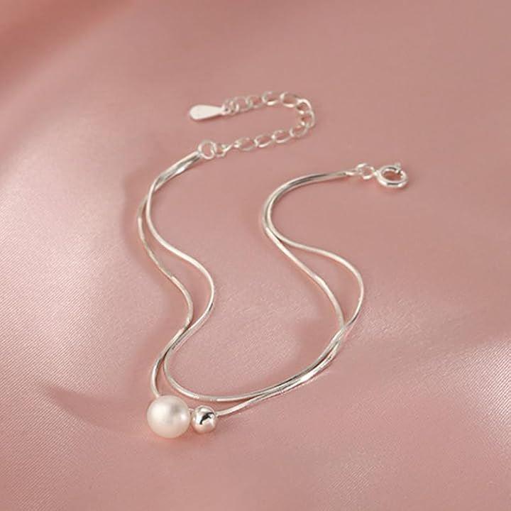 「デザイン」高見えするシルバーカラーにフェイクパールと小さめのメタルボールが付属した人気のレディースブレスレット。