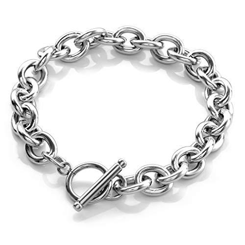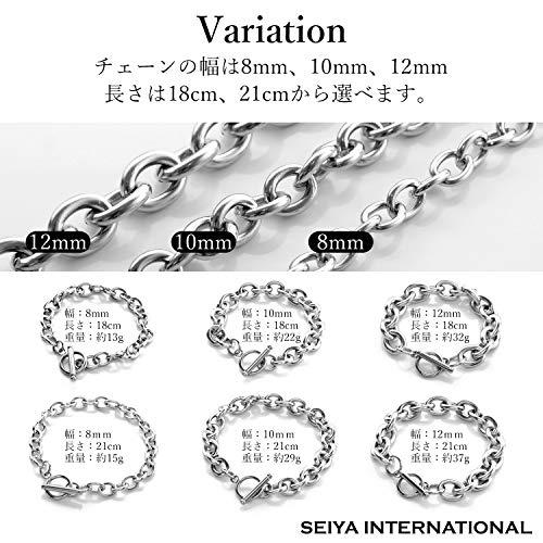 ?【 人気のマンテル ブレスレット 】マンテルブレスレットの最大のメリットは、付け外しのしやすさにあります。そのため、片手で着脱しなければならないブレスレットのアクセサリーの留め具として最適です。輪っかの中に棒を通し、また外す時にはその棒を再び輪っかの中にくぐらせてから引き抜くというシンプルな動作で簡単に取付け、取外しができるアクセサリーです。?【 シンプルコーデも格上げしてくれるチェーンブレスレット 】薄着が増える春夏は手元が寂しくなりがち。手首にシンプルなチェーンブレスレットをプラスすることで程よい量感がアクセントになりコーディネートをさり気なく引き締めスタイリッシュな雰囲気に格上げしてくれます。?【 金属アレルギー対応 】太幅 小豆チェーンに留め具をマンテルにしたデザインで材質はステンレスになります。ステンレスは金属の中でもアレルギー性が極めて低い素材です。耐食性がとても高いので水や汗によるサビ、変色に強いのでお風呂や海へ気にせずアクセサリーを着けたまま入ることができます。また、硬い金属なので傷がつきにくく、変形しにくいです。水にぬれた時も乾いたタオルでさっと拭くだけでお手入れも簡単です。?【 豊富なバリエーション 】チェーン幅8mm、10mm、12mm、チェーンの長さ18cm、21cmのそれぞれ計6種類ご用意しております。一般的な男性の手首周りのサイズは平均17センチ、女性は平均15センチで、チェーンブレスレットの場合は、手首周りプラス2~4センチぐらいがぴったり過ぎず、ちょうどいいサイズと言われています。?【 安心の30日間返品保証 】30日間の返品保証をお付けしています。安心してお買い求めください。万が一の初期不良、配送事故など商品に不具合がございましたらお気軽にご連絡ください。ブランド SEIYA INTERNATIONAL 【 サイズ 】幅:10mm、長さ:21cm、 重さ:29g