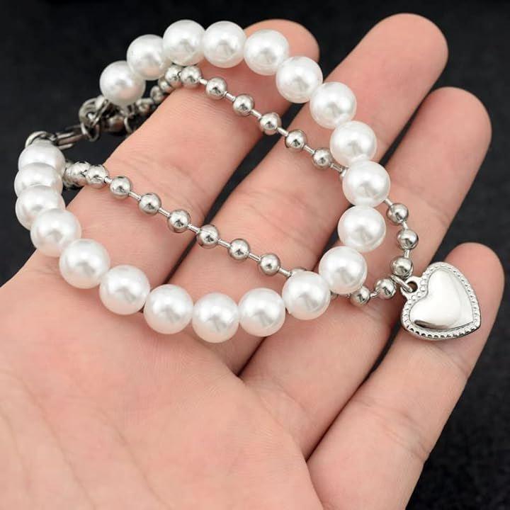 上品な人工パールとトレンドのボールチェーンを組み合わせた、大人可愛いブレスレット。