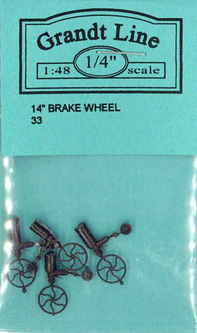 14"Brake Wheel (Plastic)直径8mmくらいのハンドルと、そのシャフト(同梱はされていません)の先につくラチェット歯車のセットです。プラスチック製本商品は模型的に形状を模したもので本来の機能は有しません。本来はアメリカ型貨車のブレーキホイールですが、工場配管のハンドルなどにも使えます。4セット入り