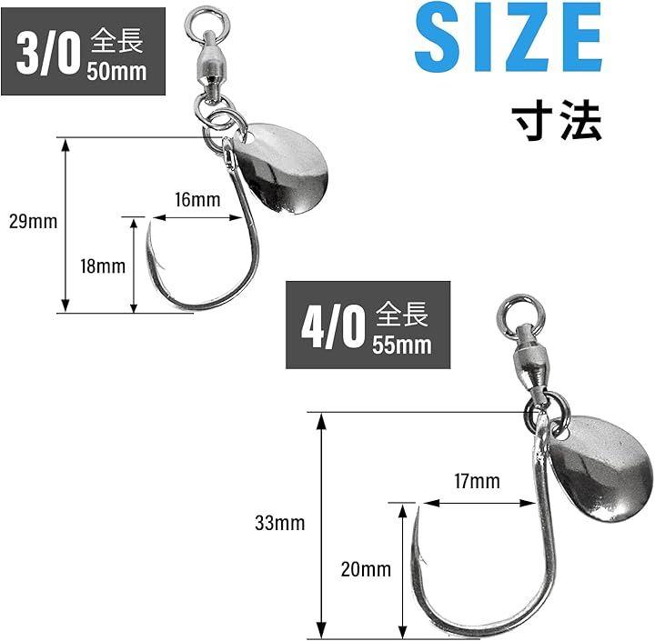 1/0と2/0の2種類のフックサイズで多彩なルアーに適用可能。