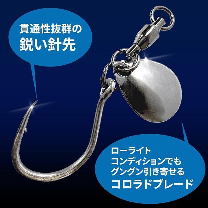 このセットに含まれるブレードフックは、コロラドメタルジグやアシストフックメタルジグに取り付けて使用することで、ブレードのフラッシングを増やし、釣果を向上させます。