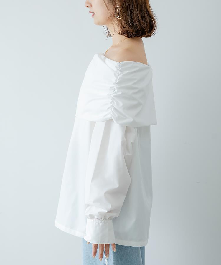 肩周りを大きく包み込むデザインで華奢見え効果も◎