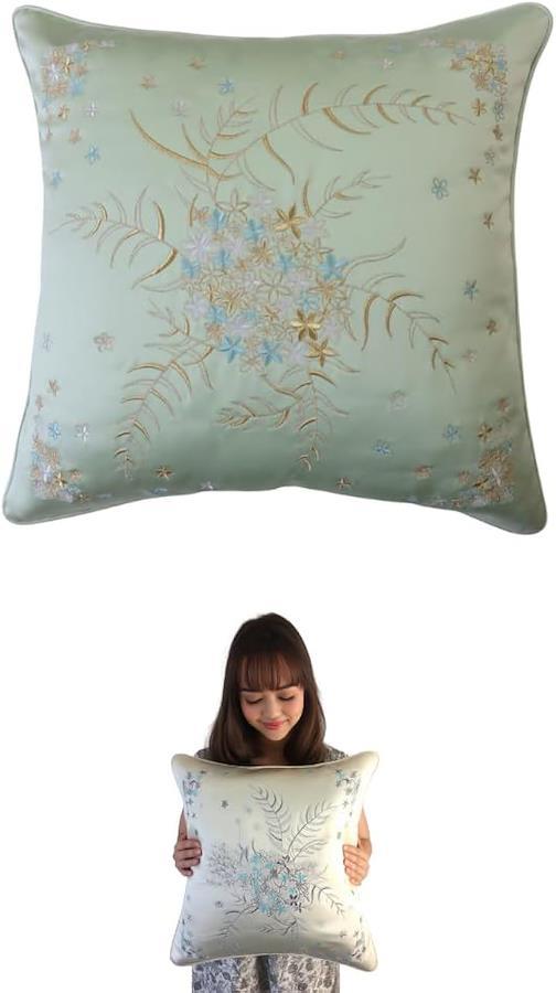 八王子Cufaのクッションカバーは、高級サテン生地に繊細な刺繍を施し、リビングや寝室を一気に華やかに演出します。
