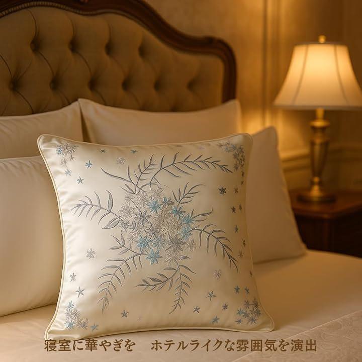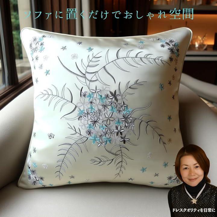 「高級感ある素材」光沢の美しいサテン生地に刺繍をあしらい、空間を格上げする高級クッションカバー