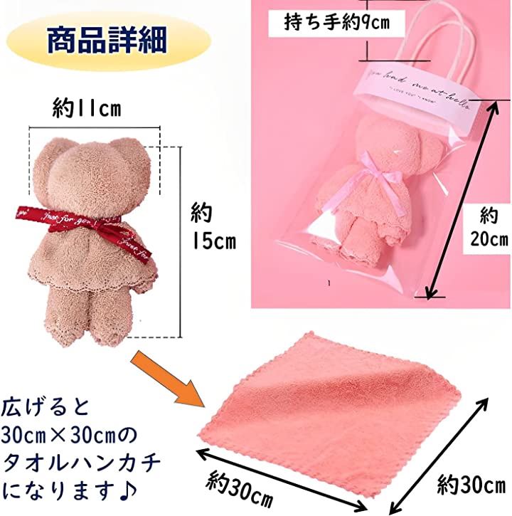 実用的なタオルでありながら、可愛さいっぱいのくまさんタオルで、喜ばれる事間違いなしのギフトです* 職場でお世話になった方へのプチギフト、子どものイベントの際の贈り物や景品、結婚式のプチギフト、ホワイトデーのお返しなど、様々な場面でお使いいただけます。